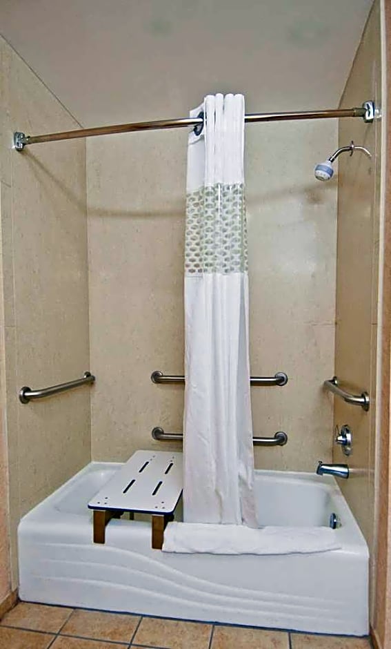 This mobility accessible, non-smoking room features one king-sized bed, and an accessible bath tub. The room features comfortable soft seating, microwave, refrigerator, a HDTV, and easy to operate alarm clock/radio. The free WiFi access will help you stay connected while on the road. If you prefer not to work at the desk, you can use the convenient lapdesk instead. You'll also enjoy the convenience of having a coffeemaker with tea service and iron/ironing board in your room. Any corresponding photo may not reflect the specific accessible room type or room feature.