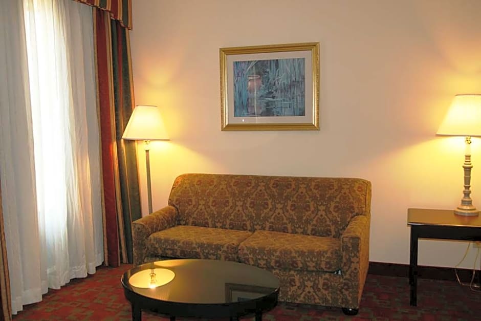 HDTV, free WiFi access, sofa bed, work area, large desk, coffeemaker Enjoy your stay in this spacious non-smoking studio suite which contains two queen-sized clean and fresh Hampton beds® and a convenient plush sofa bed for extra guests. Relax and watch a movie on the 25-inch HDTV or catch up on work at the desk and stay connected with free WiFi access. Savor a freshly brewed coffee from the coffeemaker provided. The bathroom provides fluffy towels, a shower with WaterPik® showerhead and a curved shower rod which allows more light and space in the shower.